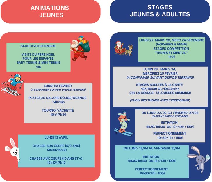 Afin de clôturer l’année nous vous proposons quelques animations.